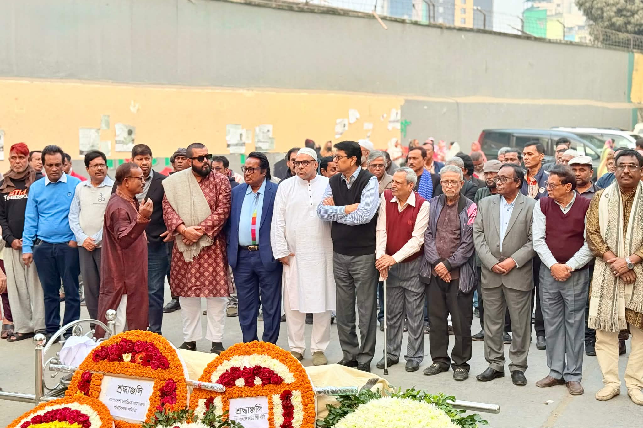 ফ্রিজার ভ্যানে করে মরদেহ আনা হলে বিএফডিসি প্রাঙ্গণে এক হৃদয়বিদারক পরিবেশের সৃষ্টি হয়। শিল্পী, পরিচালক, প্রযোজকসহ চলচ্চিত্রের নানা শাখার সহকর্মীরা শেষ শ্রদ্ধা জানাতে ভিড় করেন। ফুলেল শ্রদ্ধা আর নীরব প্রার্থনায় বিদায় জানানো হয় এই গুণী অভিনেতাকে।