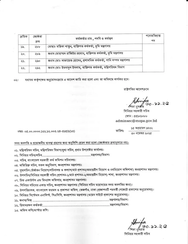 একইসঙ্গে তাদেরকে জনপ্রশাসন মন্ত্রণালয়ের বিশেষ ভারপ্রাপ্ত কর্মকর্তা হিসেবে দায়িত্ব দেওয়া হয়েছে।