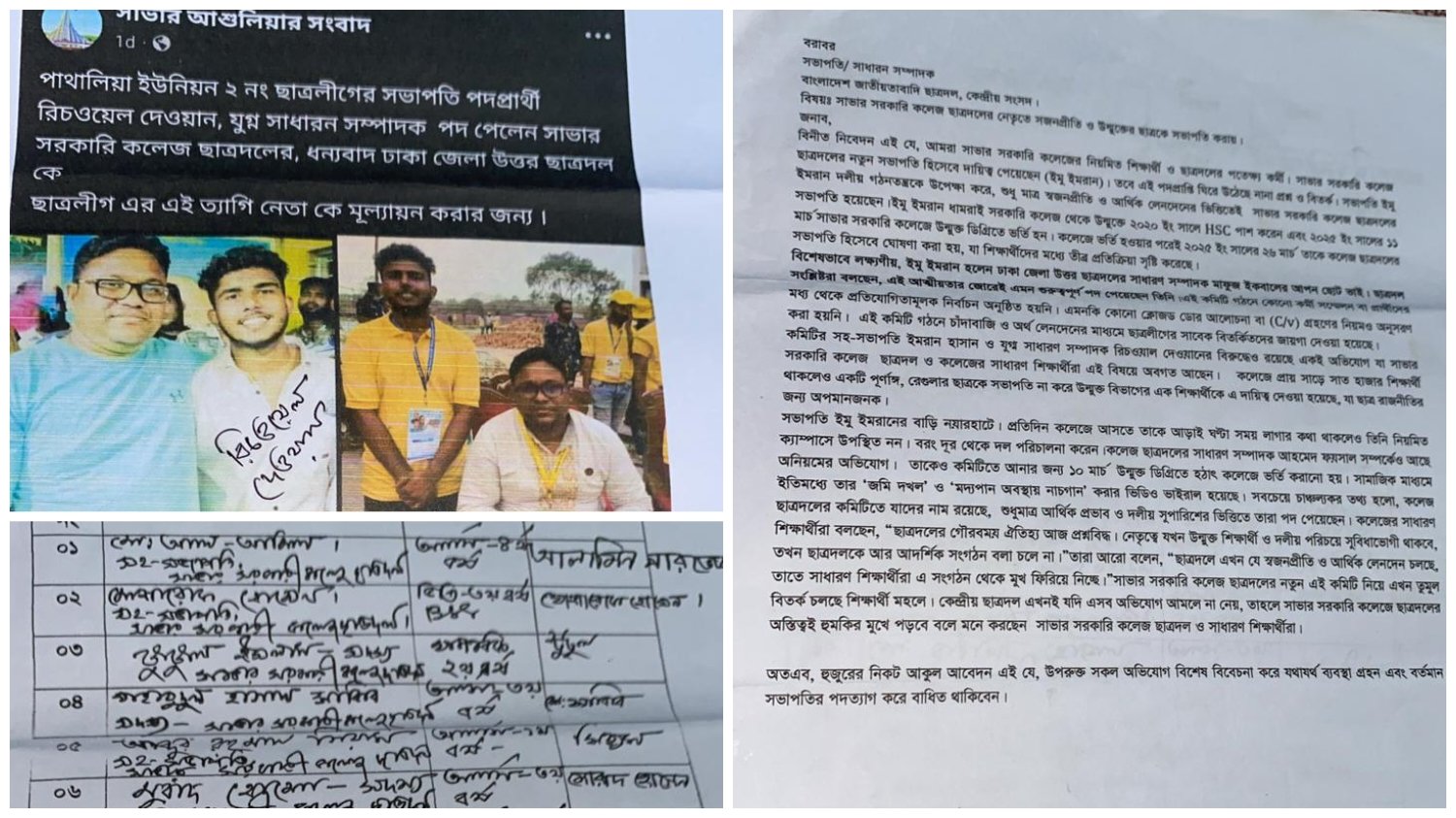 ১৭ জন শিক্ষার্থীর গণস্বাক্ষর সহ চিঠিতে কলেজ কর্তৃপক্ষ বরাবর শিক্ষার্থীরা অভিযোগ করে বলেন, ইমু ইমরান ২০২৫ সালের ১১ মার্চ সাভার সরকারি কলেজে ভর্তি হন এবং মাত্র কয়েক সপ্তাহের মধ্যে ২৬ মার্চ সভাপতি হিসেবে ঘোষণা করা হয়। কোনো কর্মী সম্মেলন বা প্রতিযোগিতামূলক নির্বাচন হয়নি।